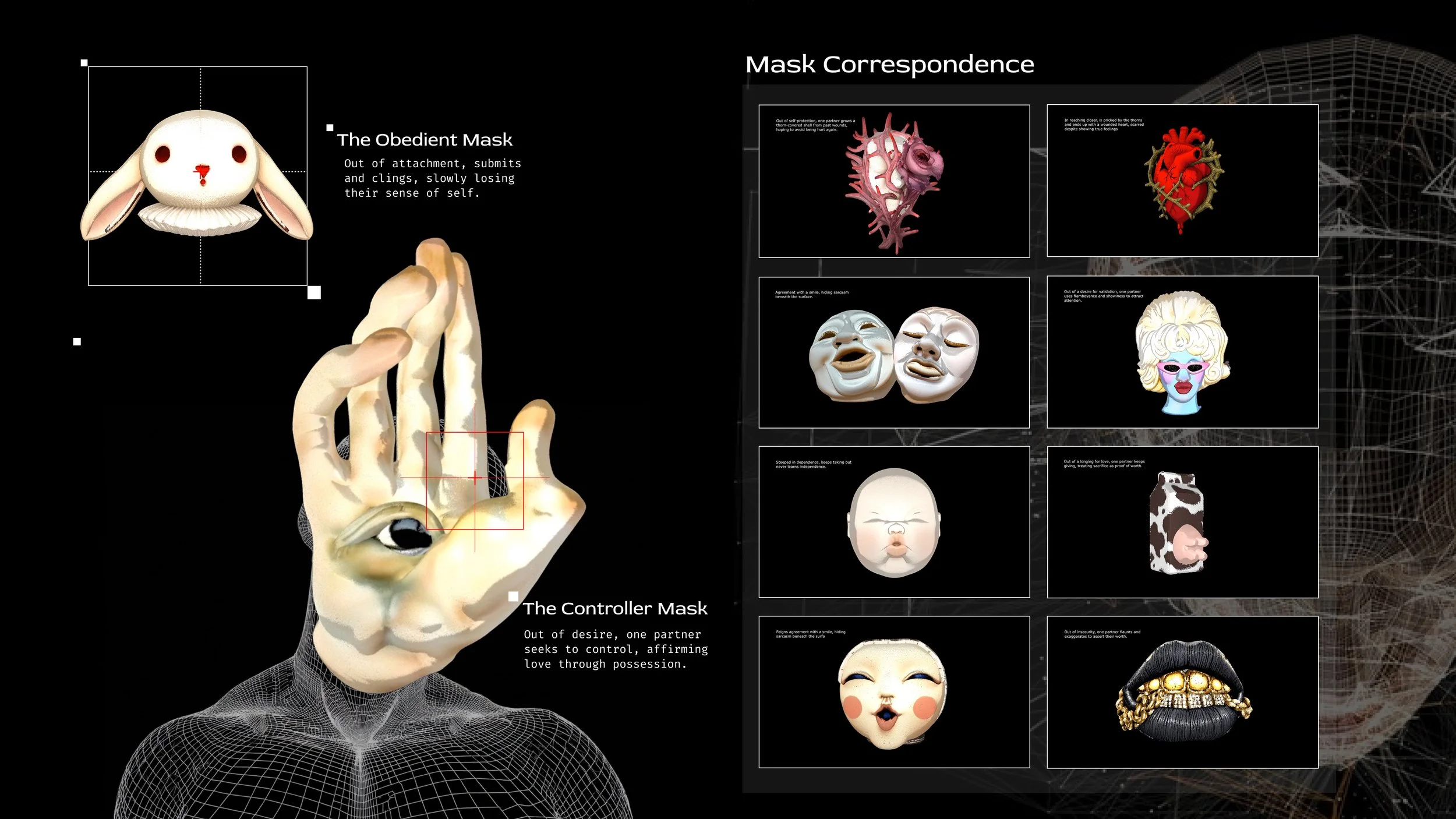 Lili Shen - Behind the Mask, Digital Content & Interactive Installation, 32 inches, 2025, Portfolio: https://nuoshen.webflow.io/