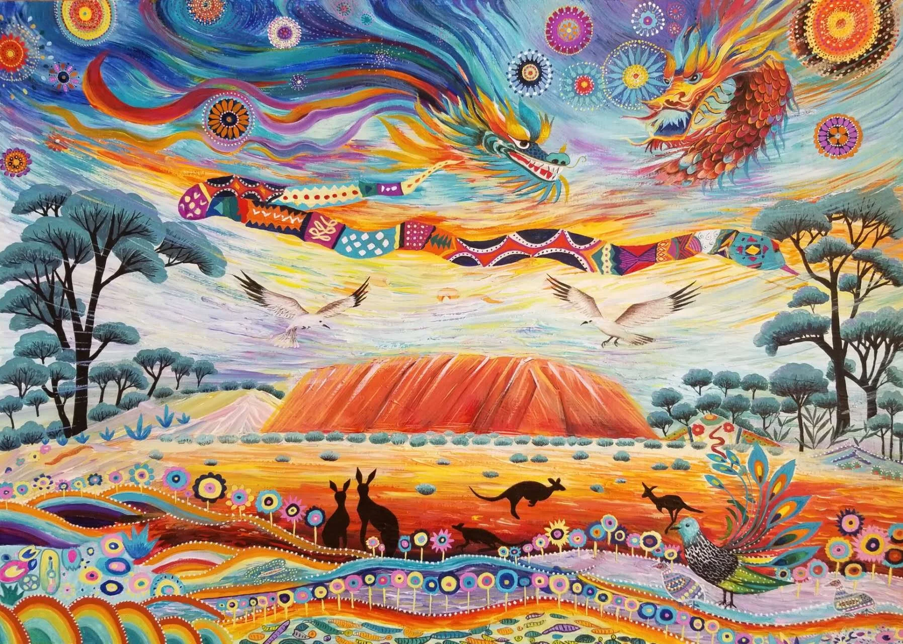 Sein Jun - “Our Unseen Connections” Gouche Paint, Colored Pencils 29.7 x 42 cm