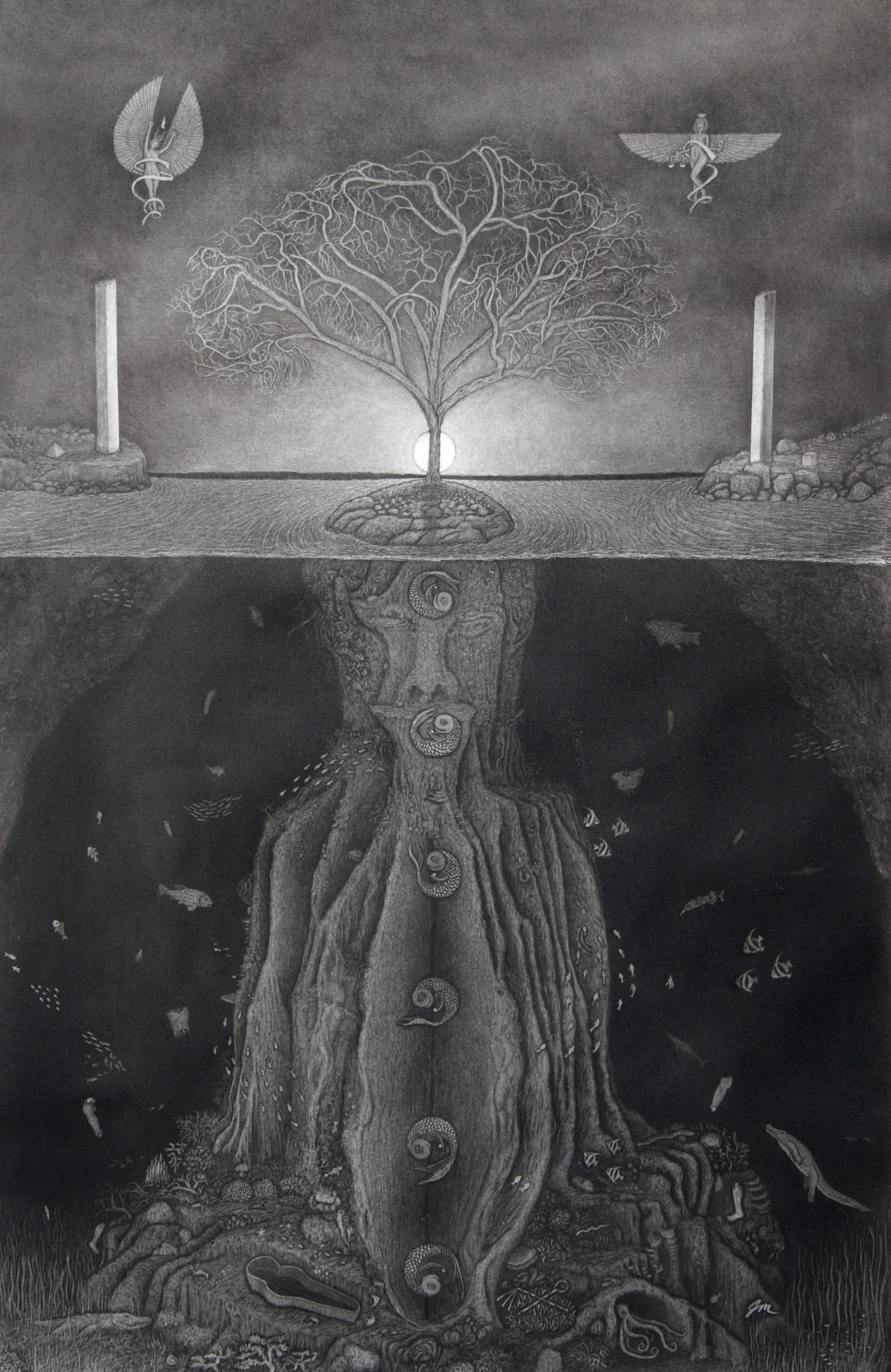 Jaceson Mann - Deep Meditation, Reductive Charcoal Drawing, 35x22in, 2024