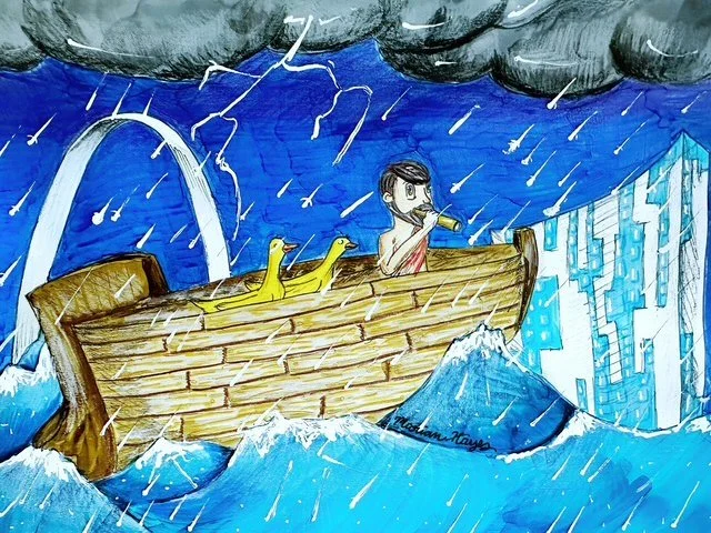 Marian Hayes - Noah and the Ducks’ Voyage, Ink on paper, 8.5in x 11in, 2024