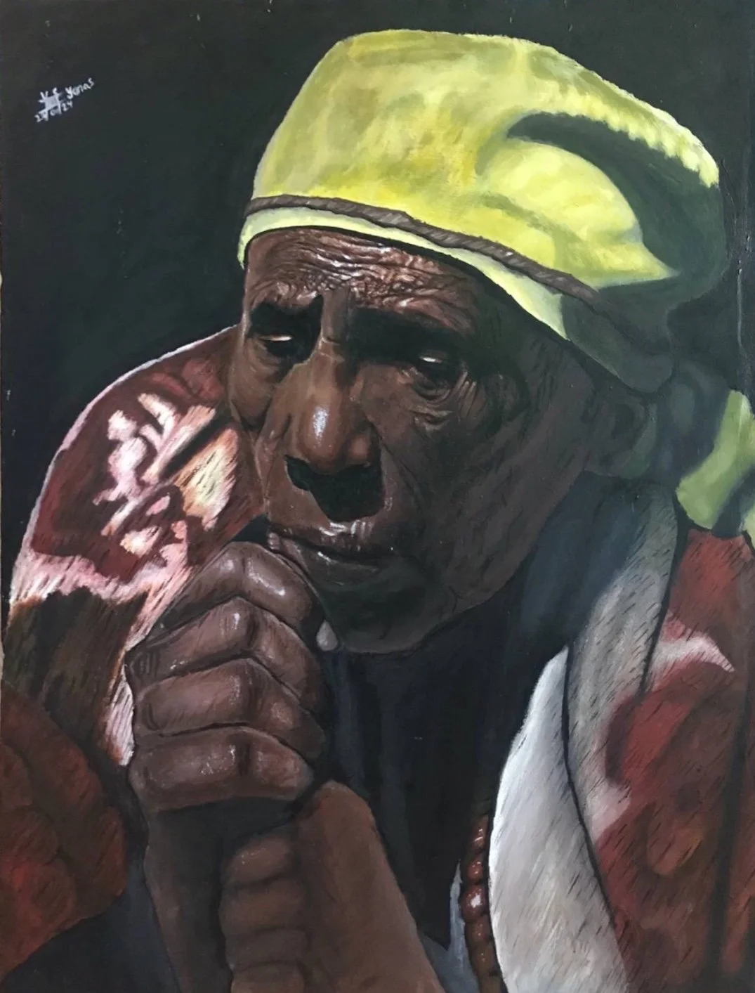 Yonas Mulugeta Kenea - Glimmer of Hope in the Shadows, 2024 | 80×90 cm | Acrylic on Canvas