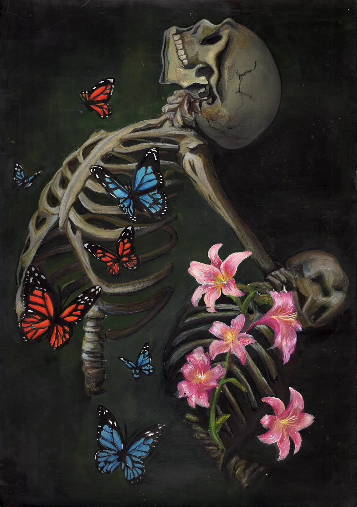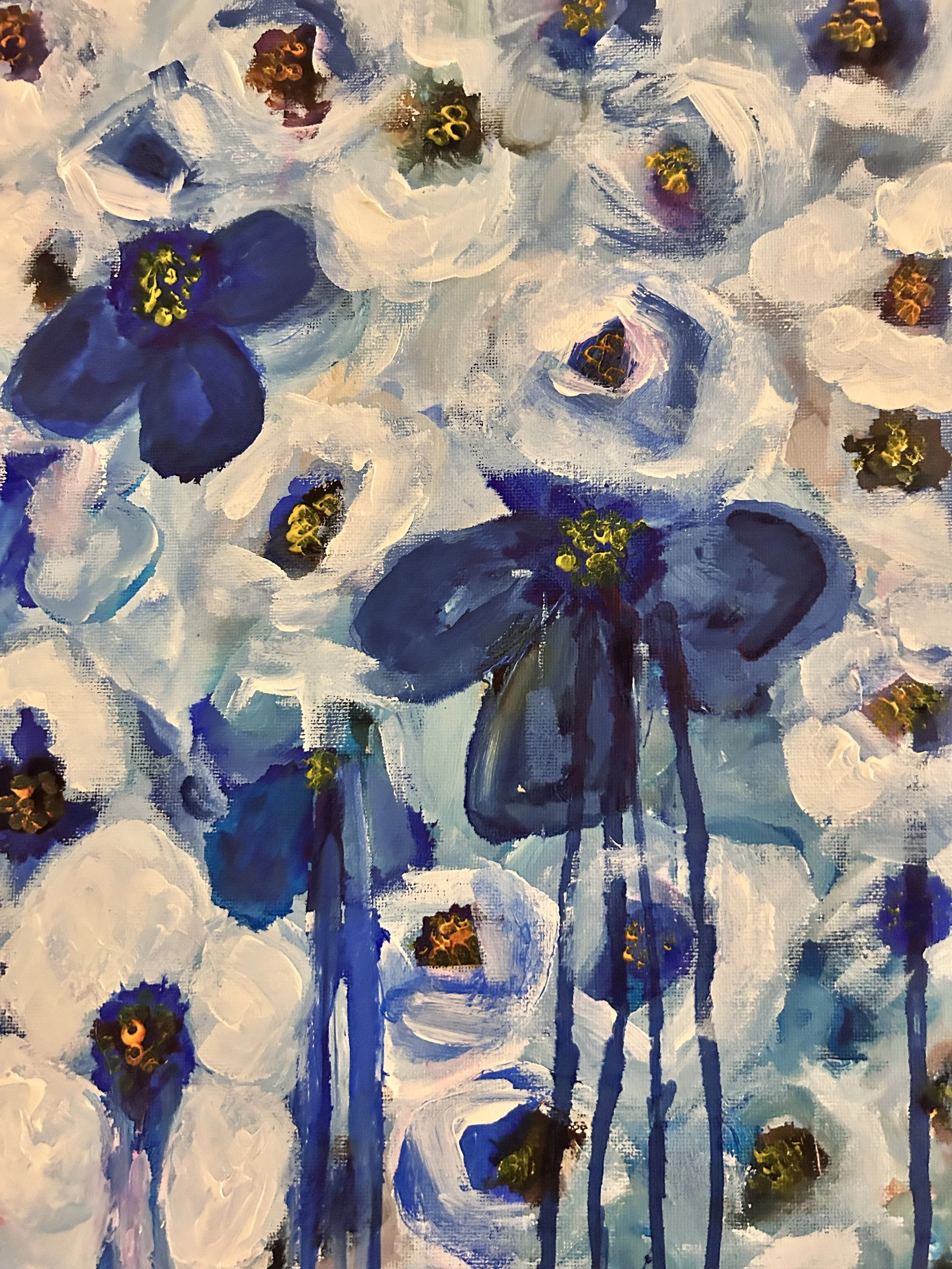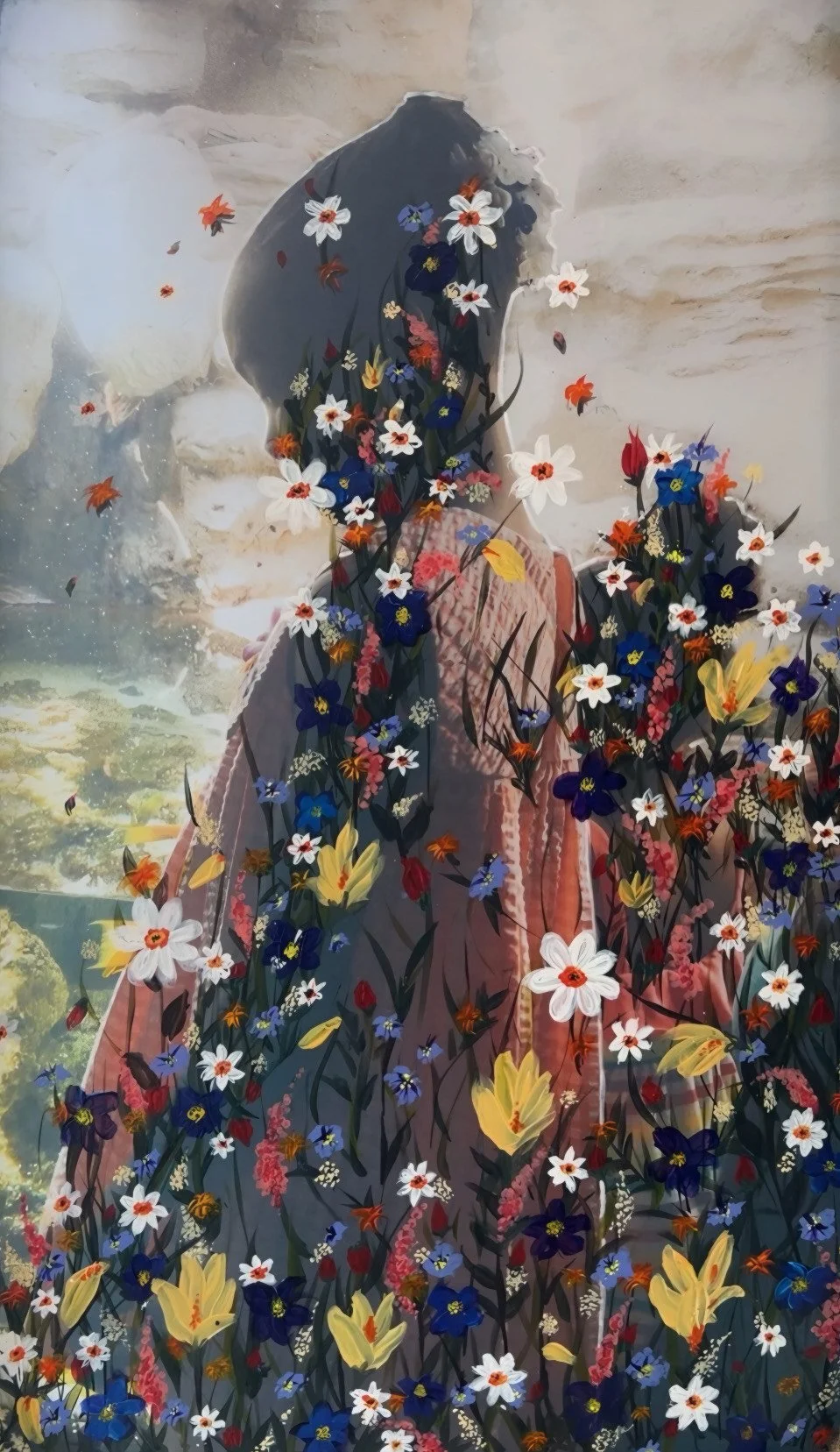 Martina Robb - Bloom Fever- mixed media, flower petals, acrylic, colored pencil, pencil-
