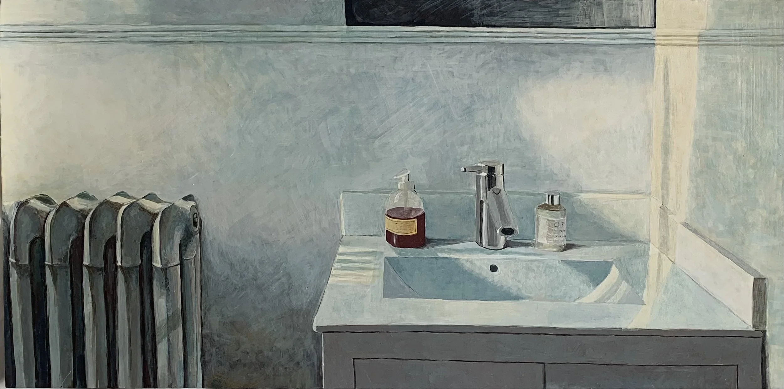 Lark Wicinas - "February," egg tempera on panel, 12" x 24", 2022