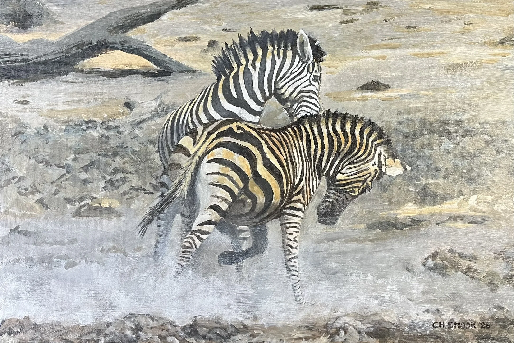 C.H. Smook - "Zebras", Acrylic on Canvas board, 40 x 30cm (15.7 x 11.8 inches), 2025, $267 USD
