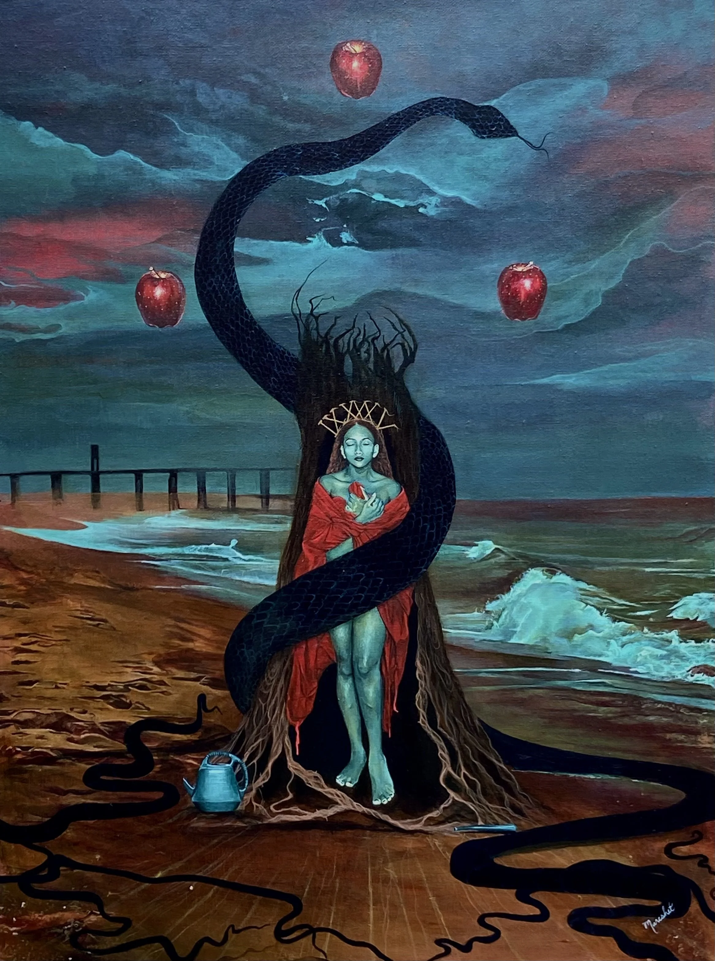 Nightmare at Shore, Acrylic on canvas, 18X24, 2024