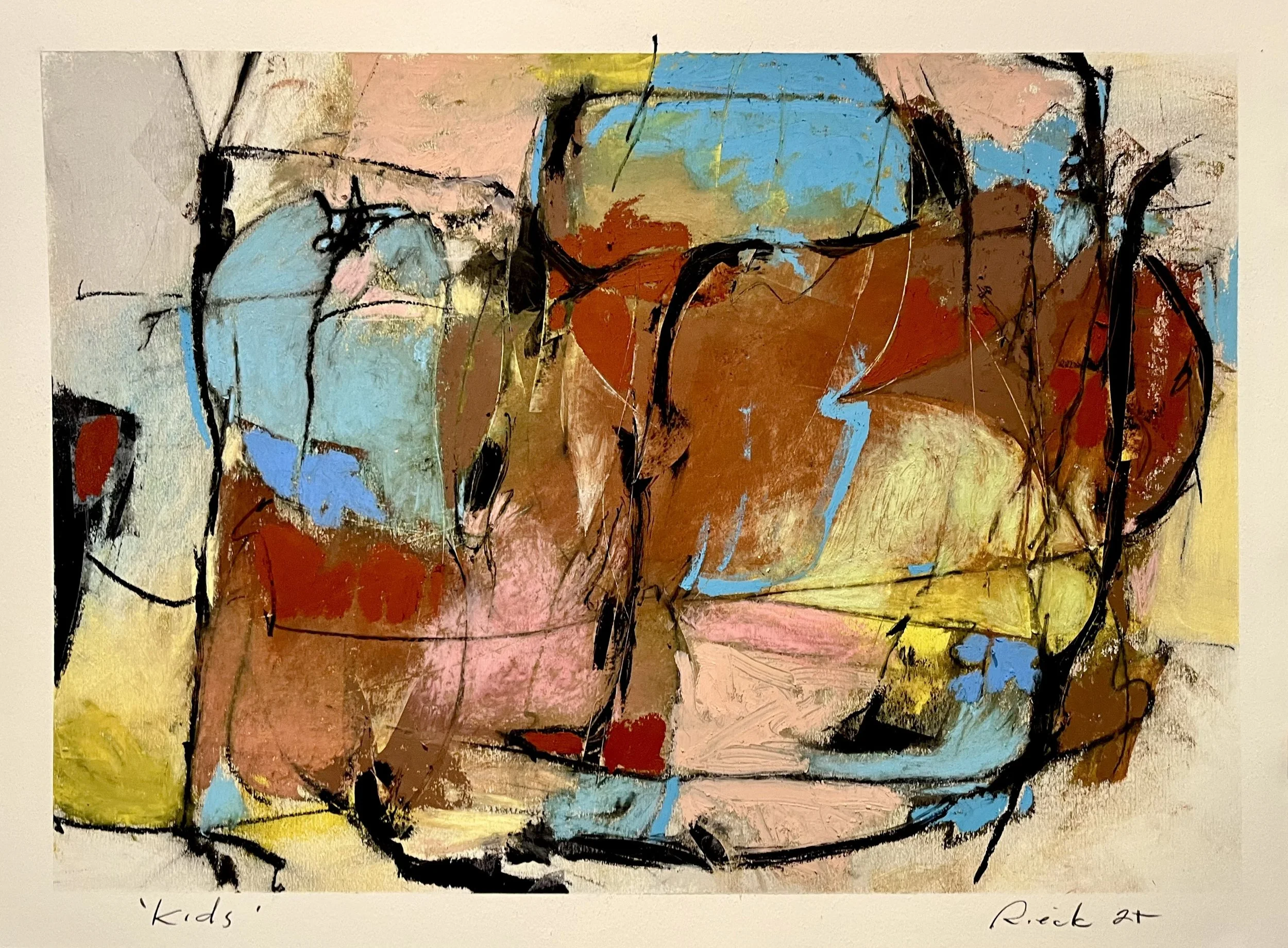 Donald Rieck - 'Kids', mixed media on paper, 19X27 inches, 2025