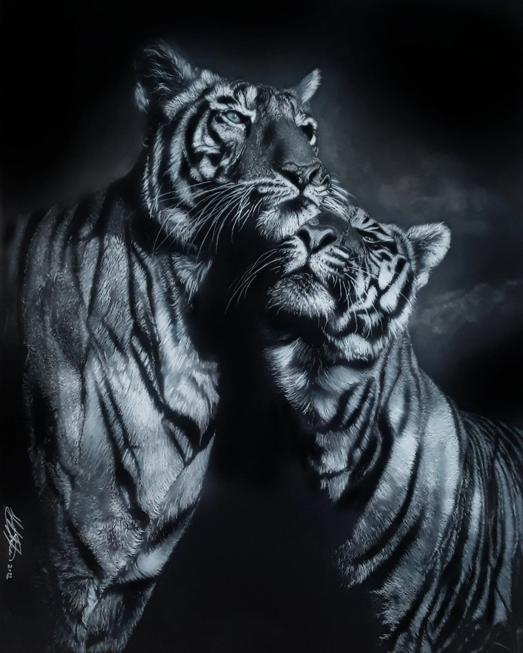 Sherif Hakeem - "Sweet Embrace", 27 1/8" x 21 7/8", $3,000, White Charcoal.