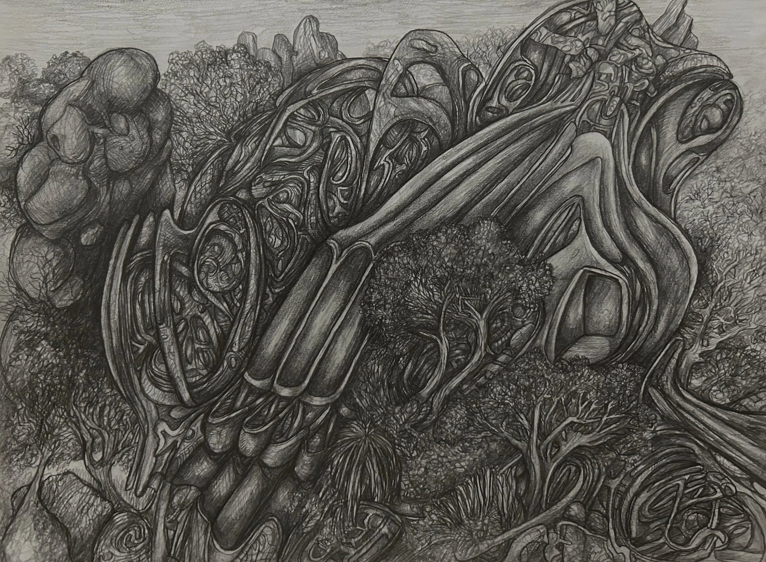 Savannah McKinzie - Ecochamber, compressed charcoal on paper, 22 x 29 inches, 2025, $150