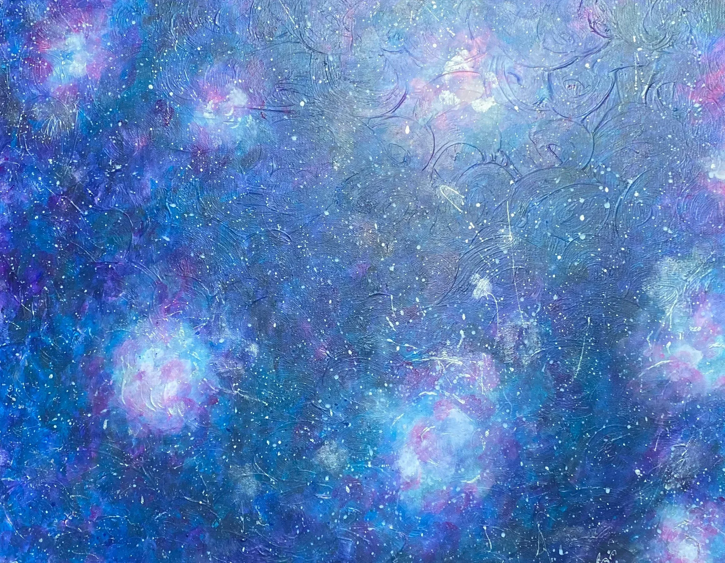 Sara Hayes - Synaptic Nebula, acrylic and modeling paste on stretched canvas, sealed with Krylon matte varnish, 16” x 20”, 2025, $200