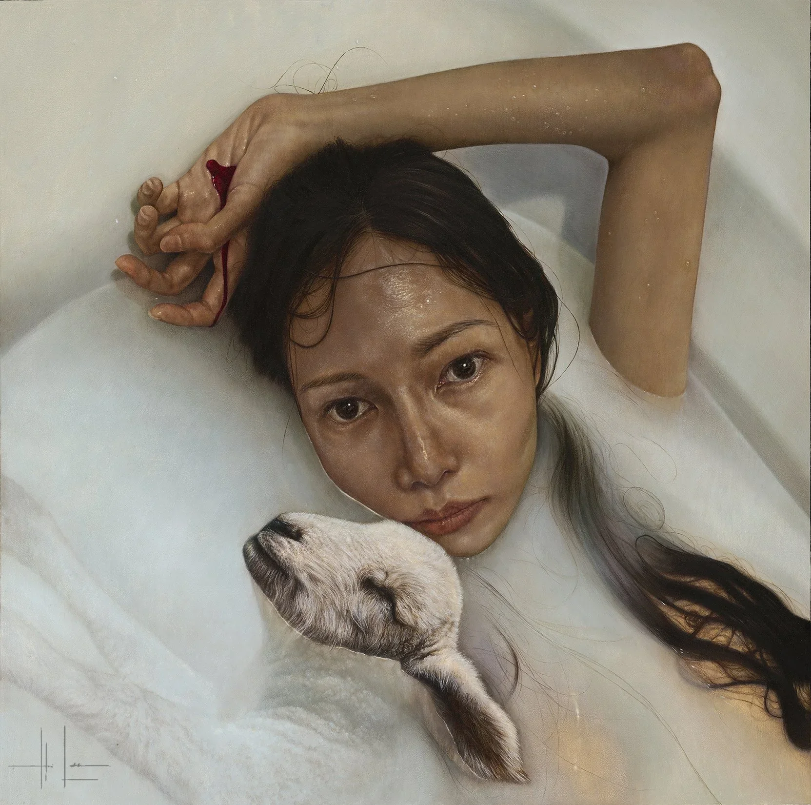 Washed in the Blood of the Lamb - Oil on Aluminum Panel, 59.6 cm x 59.6 cm, 2023