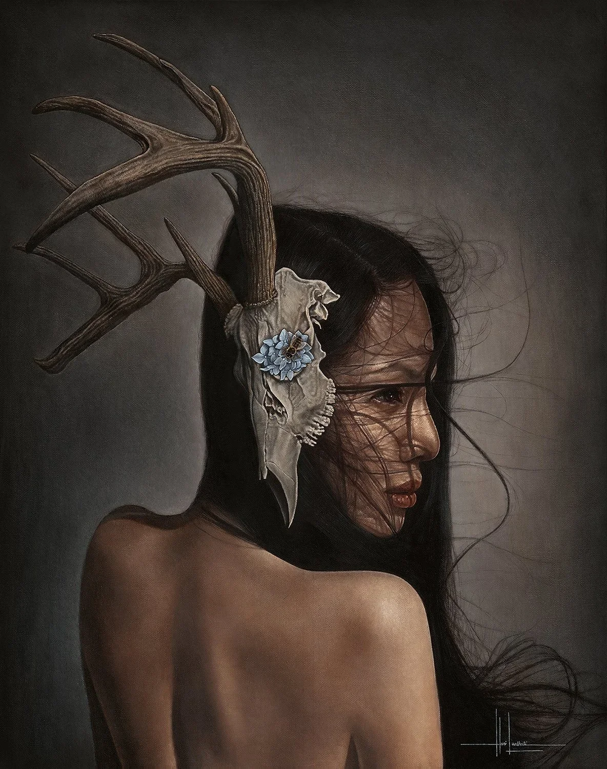 The subjects or themes for my artworks often stem from a deep fascination with the human body, particularly the nude figure, which I find inherently elegant, classic, and deeply relatable. I'm drawn to the sincere and raw beauty it embodies. To convey a sense of interconnectedness and a reminder of our connection with nature, I frequently intertwine elements of nature and animals with the human figure within my art. This integration serves as a visual testament to our interconnectedness and a gentle urging to remain mindful of our environment.